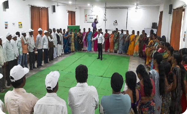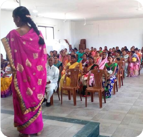 A meeting of Women folk from Thadipawni and nearing villages who have associated together to form Self Help Groups is convened regularly to discuss the activities taken up through their SHG’s and to discuss the various problems faced by them from Banks or other connected Government agencies while day to day functioning. The Government Officials at the village level and Taluka level are also invited for the meeting and they take active participation in guiding the participants and for solving the problems faced by them.