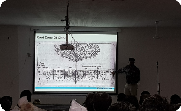 Three consecutive sessions of workshops for training of farmers and giving them the know-how of irrigation systems, latest technology in irrigation and government subsidies and the process of availing the subsidy were taken up wherein technical experts from renowned Irrigation Company NETAFIM trained the farmers and the sessions were very enthusiastically attended by Orange growers from the area. Training sessions on various subjects as per the need of farmers and villagers are being regularly organized at the center.